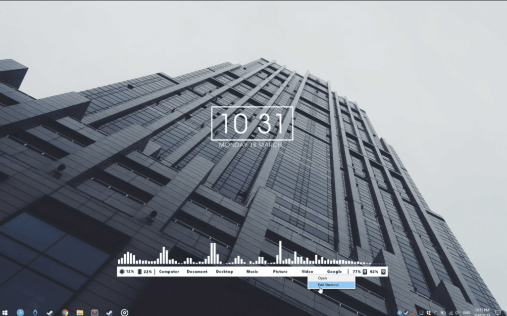 FLHUD rainmeter skin is yet another minimalistic theme that you can use to change the look and feel of Windows. One thing I liked a lot is the menu bar where you can add shortcuts. Apart from that, the skin comes with audio visualizer, CPU and RAM info and finally a big and catchy time and date module as well. The default wallpaper does not look that good, you may find a good one and couple the same with this Rainmeter skin.