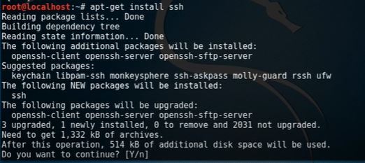By default, Kali Linux comes with an OpenSSH server installed on it. For some reason, if it is not present in there, then follow the below-given command to get it installed.