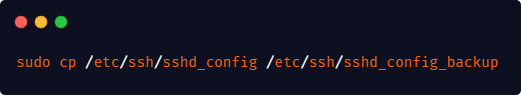 sudo cp /etc/ssh/sshd_config /etc/ssh/sshd_config_backup