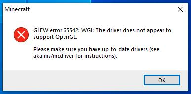 Minecraft OpenGL 65542 Error Solved
