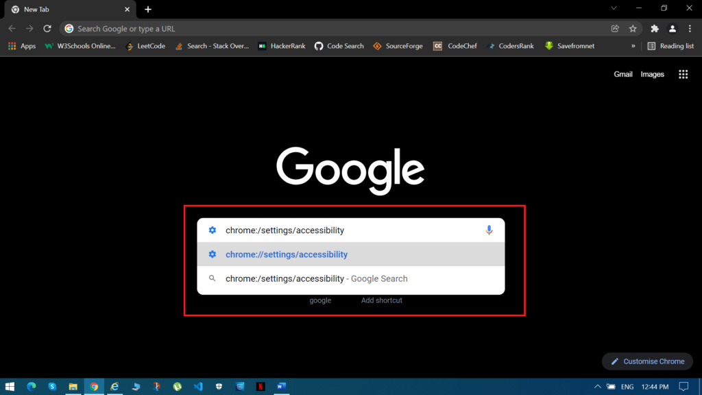 2) Type chrome:/settings/accessibility into the address bar. This will take you directly to Chrome’s accessibility settings.