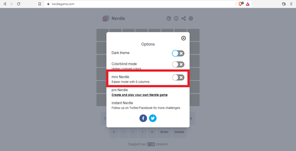 Make sure you toggle it on, to access mini Nerdle.