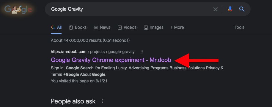 Open the web browser and go to Google.com. Now, search for Google Gravity and hit enter. Click on the first search result, and Boom, you will directly land on the Google Gravity page.