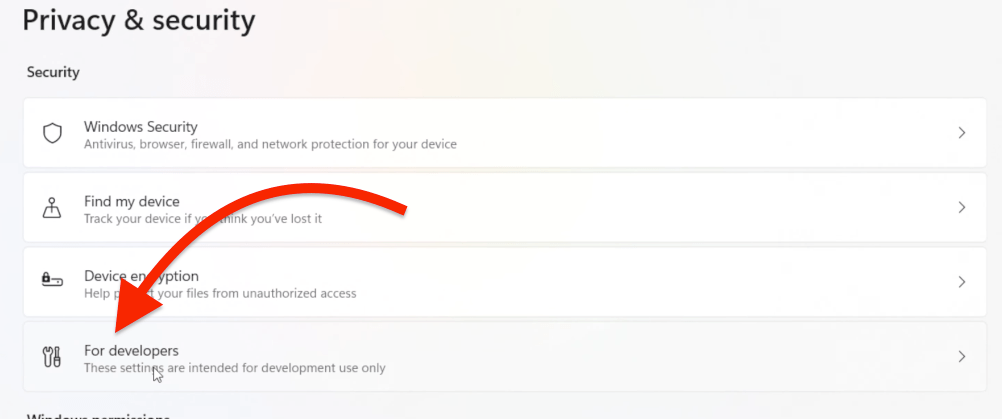 Click on the option ‘For developers‘ under Security.