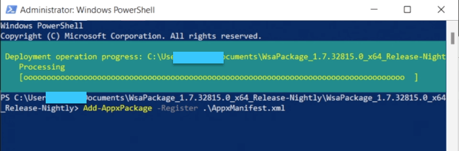 In the above command, replace <path> with the address/path of the WSA folder.