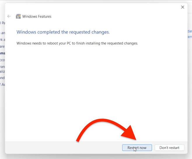 You need to restart your computer for the changes to take place. So, click on the Restart now button and wait till the computer boots back in.