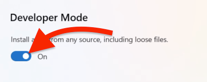 Under Developer Mode, enable the option to Install apps from any source, including loose files. Just click on the toggle button to enable the same.